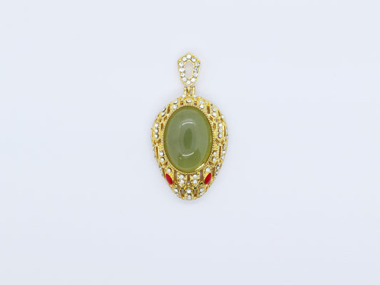 Hollow Carved Green Nephrite Pendant - Cobra Head Necklace