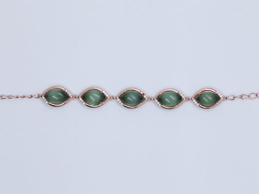 Natural Cat's Eye Jade Gemstone Bracelet, Unique Inlaid Design