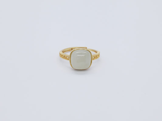 Nephrite Jade Ring, Square Geometric Sterling Silver Ring, Handmade Chinese Hetian Jade Jewelry, 2.35g