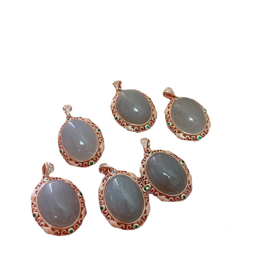 Hetian Smoky Lavender Jade Cabochon Pendant – 925 Silver Setting