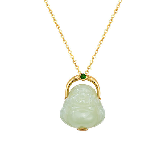 Hetian Jade & Pure Gold Fortune Bead Necklace – “Lulutong” Gold-Inlaid Pendant