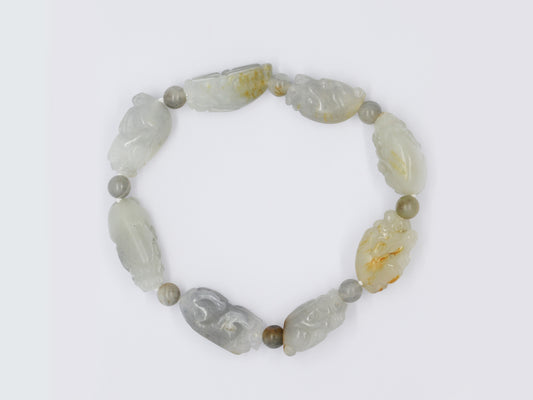 Nephrite Jade Bracelet, Pi Xiu Wealth Bracelet, 29.1g Multi-Gemstone Bracelet, Chinese Auspicious Animal
