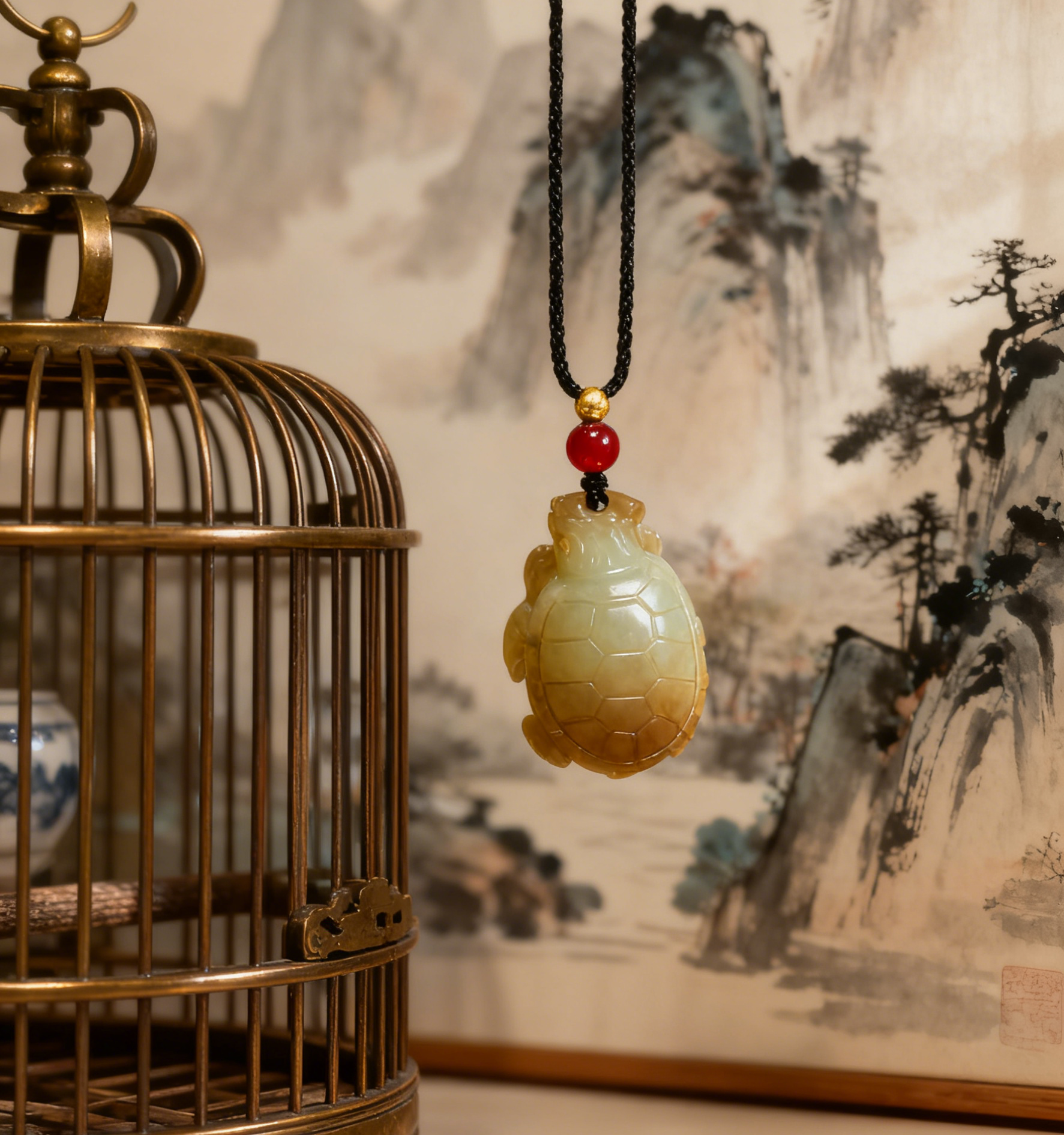 In Chinese culture, the Dragon Turtle is a sacred hybrid creature symbolizing longevity, wisdom, and protection. It is believed to guard against negative influences and bring stability to one's life and home. The sugar-colored jade represents earthly abundance and warmth, while the white jade adds purity and mental clarity. Wearing this pendant is thought to attract health, long life, and steadfast protection.