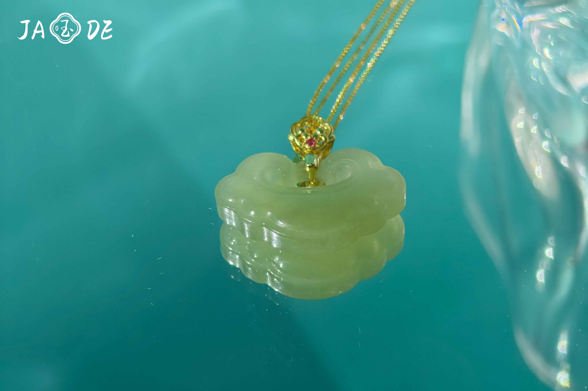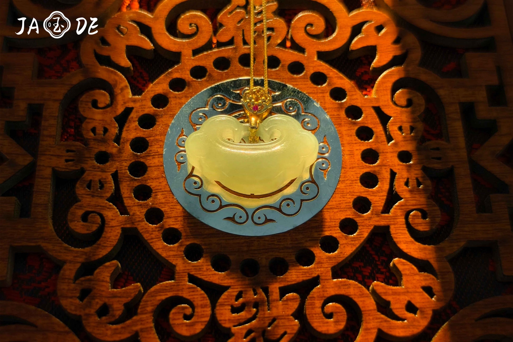 Embrace centuries of tradition and blessings with our handcrafted Hetian jade Peace Lock pendant.