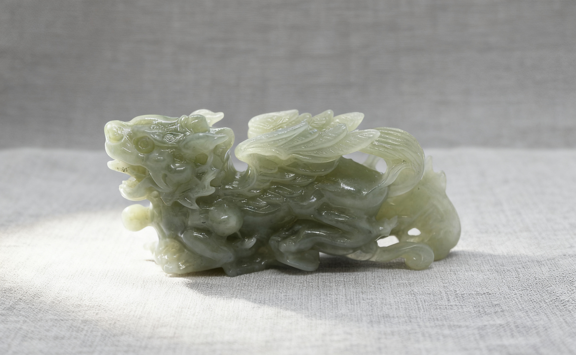 Qilin Jade Sculpture, Solid Nephrite 42.28g, Chinese Mythical Beast, Protection Talisman