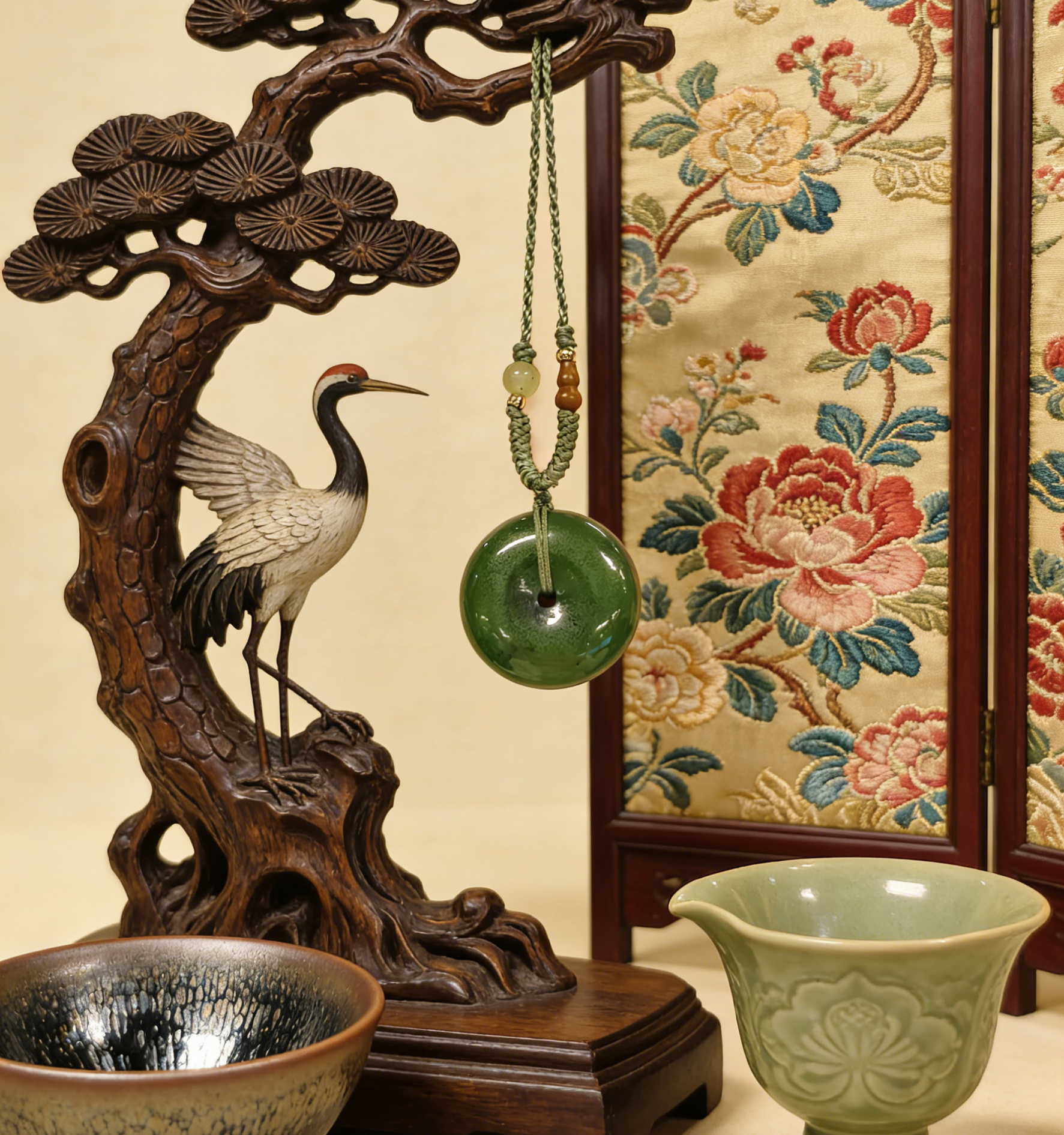 The Pi An Kou is one of the most cherished traditional jade motifs. Its circular shape with a central opening symbolizes heavenly perfection embracing earthly stability, representing wholeness, protection, and the smooth flow of life's energy. Wearing it is a long-held practice to invite safety, peace, and harmonious well-being for the wearer, guarding against misfortune and promoting a tranquil mind.