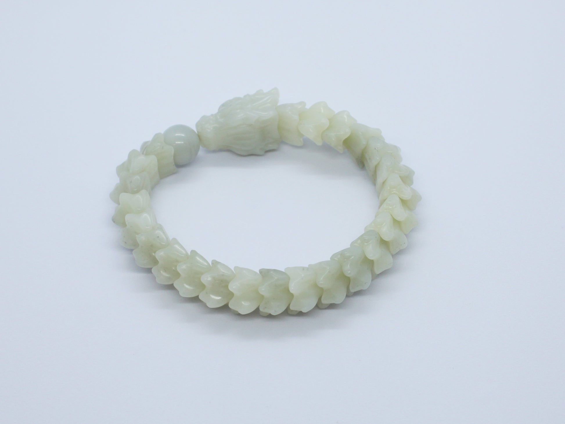 In Eastern tradition, the dragon is a revered symbol of divine protection, authority, and supreme good fortune. The white jade amplifies these qualities, adding a layer of peace, clarity, and smooth-flowing energy to the powerful dragon spirit. Wearing this bracelet is believed to create a sacred shield around the wearer, harnessing the dragon's might to guard your path and attract auspicious opportunities.