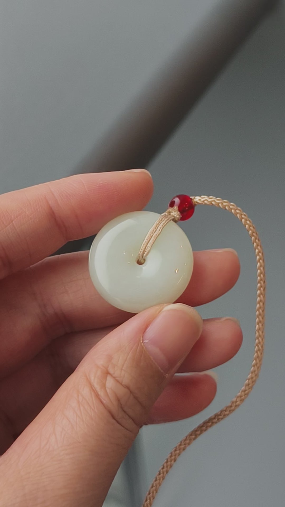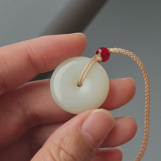 This is the quintessential Chinese "Pi An Kou" (Peace Disc), meticulously carved from a piece of pure white Hetian nephrite jade. The disc is perfectly round and smooth, with a centered hole, polished to a soft, gentle glow. Its modest size (23mm) and light weight (8.2g) make it an unobtrusive yet profoundly meaningful piece for daily wear.